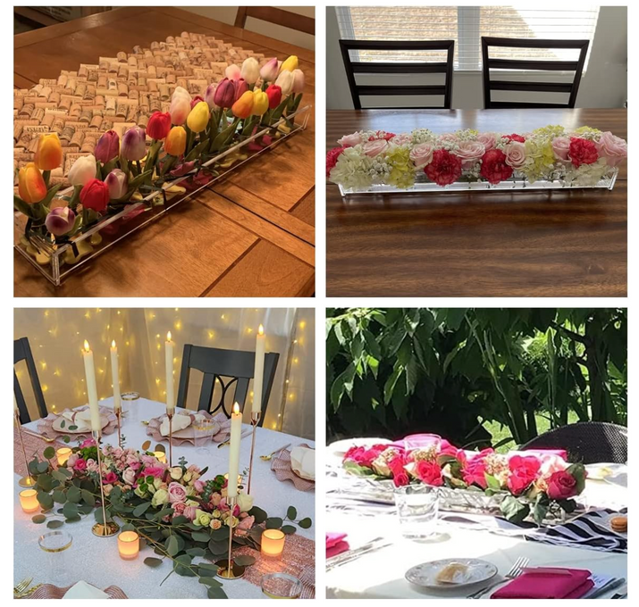 17 Inch 2 Pack Clear Acrylic Flower Vase Rectangular Floral Centerpiece